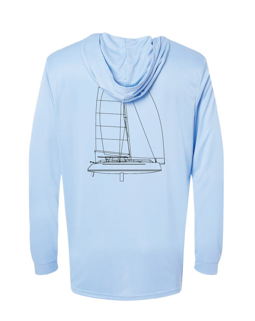 The comfort of a tee and the protection of a hoodie, combined. This is a versatile pullover with style to spare, whenever you throw it on. Sun too intense? Just pop up the hood!