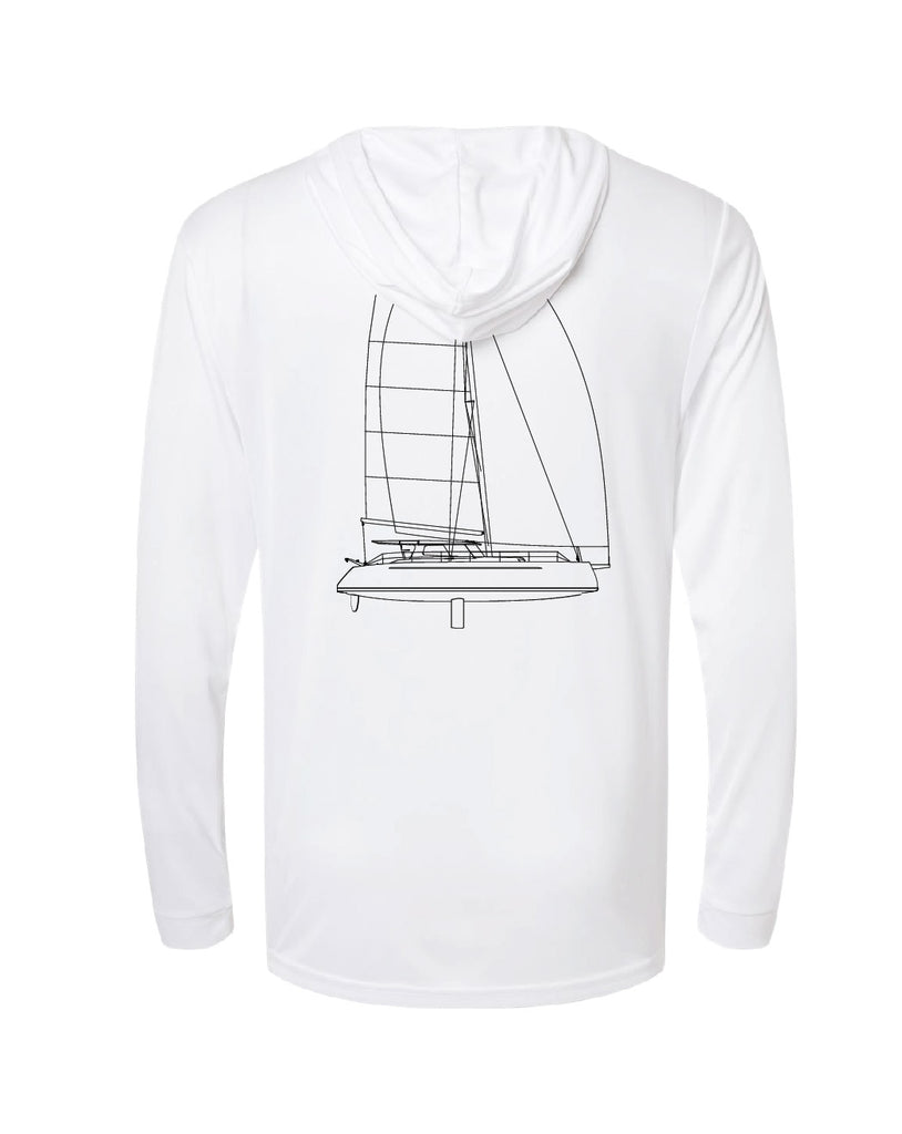 This shirt is customizable with your boat name! If you wish to add your boat name below the line drawing on the back of the shirt, please select "Yes" in the Customize option area.