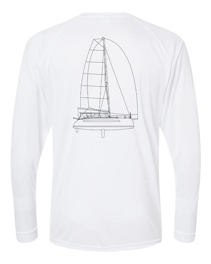 This shirt is customizable with your boat name! If you wish to add your boat name below the line drawing on the back of the shirt, please select "Yes" in the Customize option area.