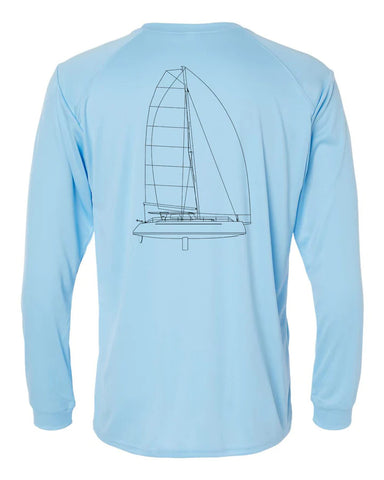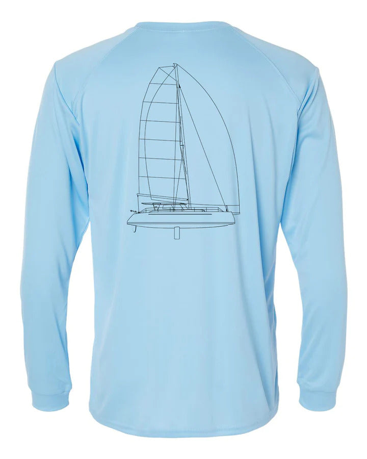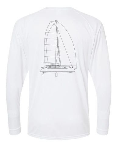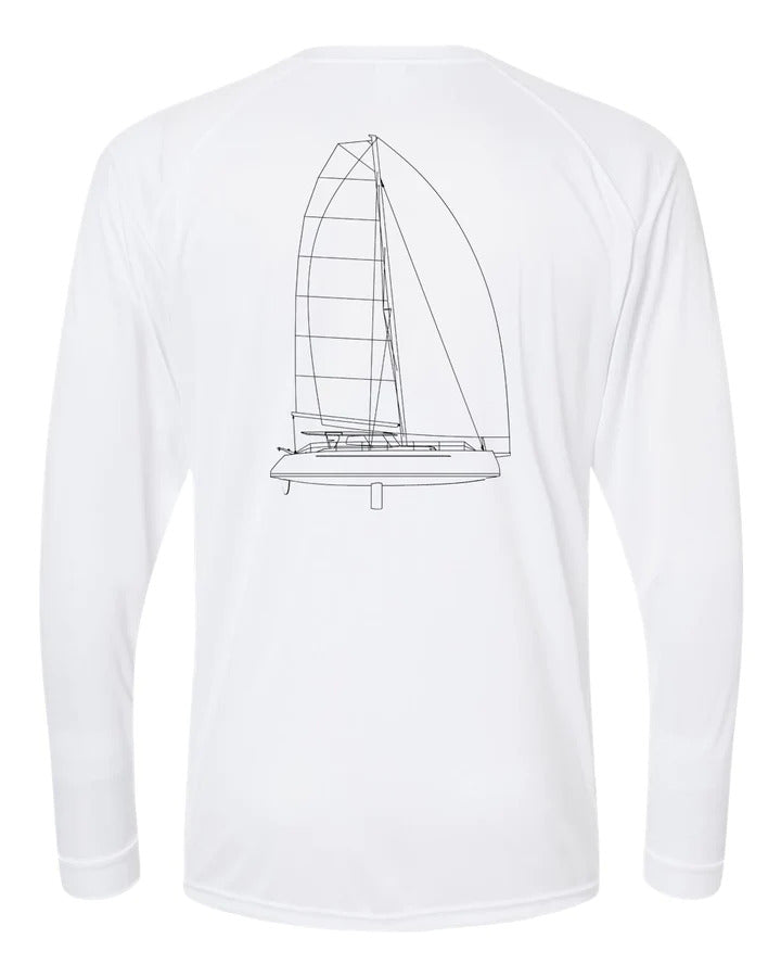 This shirt is customizable with your boat name! If you wish to add your boat name below the line drawing on the back of the shirt, please select "Yes" in the Customize option area.